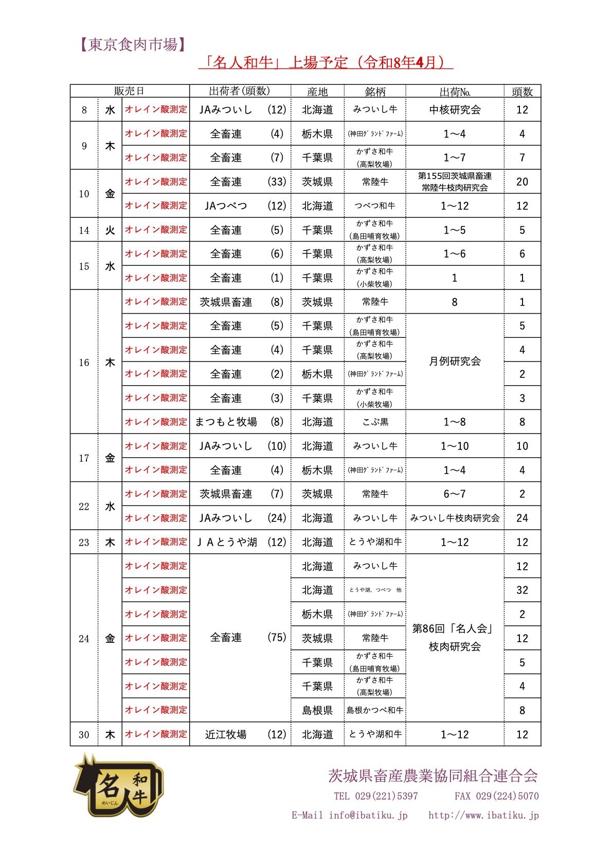 「名人」給与牛の上場(販売)について